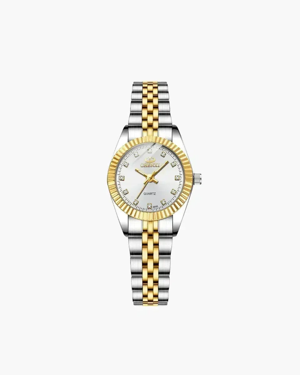 Odkryj ponadczasową elegancję z zegarkiem Avalora w wersji mini, łączącym luksus i wyrafinowanie. Dzięki efektownemu, złoto-srebrnemu wykończeniu oraz smukłemu, minimalistycznemu wzornictwu, ten model jest idealny dla nowoczesnej kobiety ceniącej klasyczny styl. Doskonały zarówno do codziennego noszenia, jak i na specjalne okazje – Avalora doda elegancji każdej stylizacji.