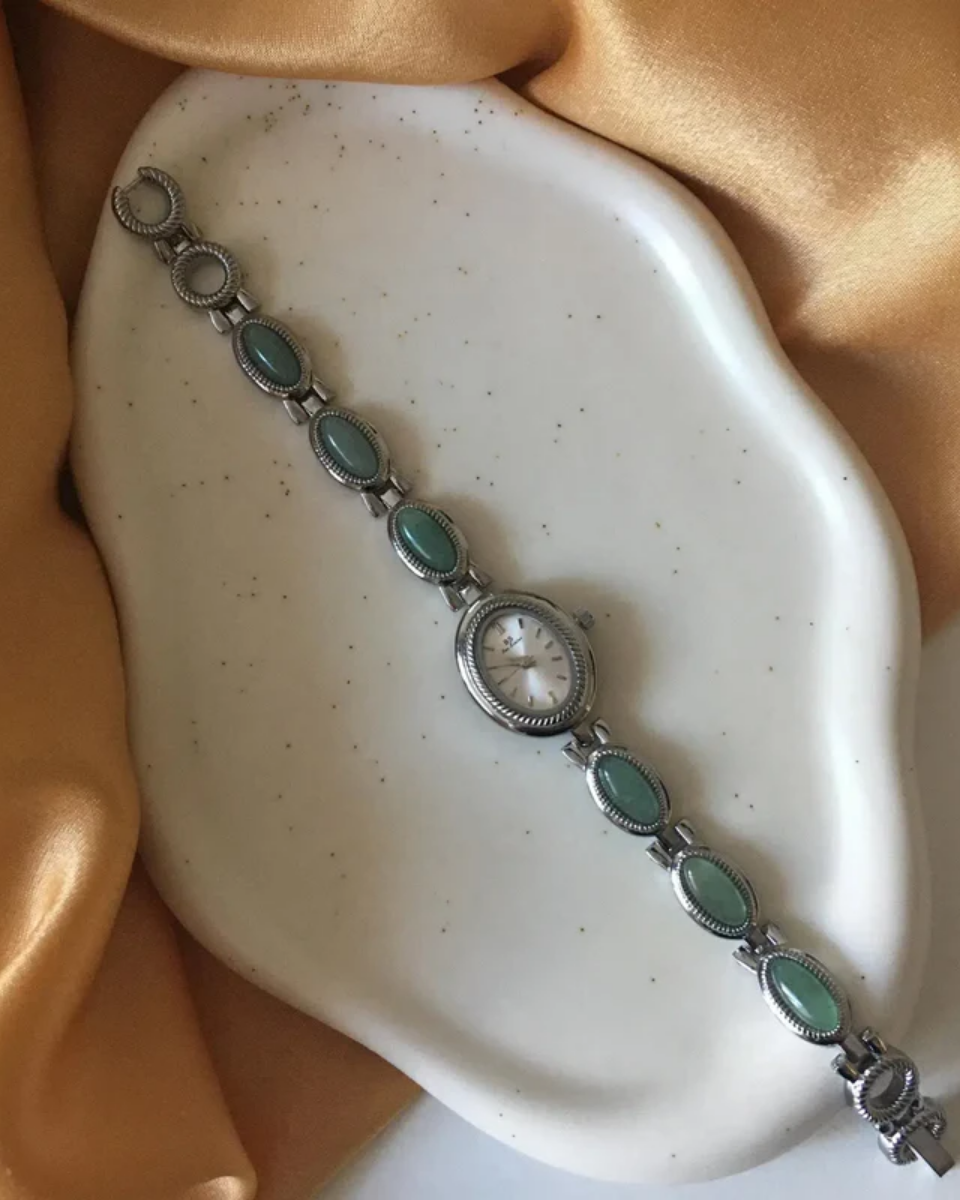 Cettina – Zielone akcenty z kamieni – Zegarek vintage